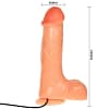 This generous vibrator with suction cup on the base can be fixed on a flat surface and used without the help of your hands. It is made of soft and realistic PVC material. It has a venous shaft, perfect glans and soft testicles to enhance its realism.