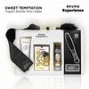 A tropical escape without leaving home. Juicy pineapple and creamy coconut awaken your skin while the stimulating gel warms the air. Accompany the journey with an exotic lubricant, an oil that leaves skin as soft as the sunset, a feather for leisurely exploration, and a blindfold to intensify every sensation. An experience to share with all five senses.