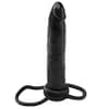 Double your pleasure and double the fun…with this strap-on dildo two’s better than one! The silicone ring on the top of the shaft acts as a performance-enhancing cock ring, while the larger bottom ring loops around his balls for a super-tight squeeze. You instantly become twice the man you were before, thanks to a smooth silicone shaft underneath that’s ready to double the trouble.