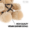 Each teddy bear is made from high-quality materials and features a look that ranges from cute to rebellious. Its details and accessories capture a provocative style, combining sweetness and daring attitude. The harnesses are made of soft leather and lace straps, fitting their petite figures impeccably. They wear masks that cover part of their faces, giving them a mysterious and charming air. The gags, in vibrant shades, add a bold and playful touch, while small chains wrap around their plush bodies, adding texture and a striking visual effect.