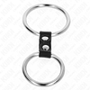 KINK – DOUBLE METAL PENIS RING 3.7 CM TO 5 CM CONNECTED BY LEATHER STRAP MODEL 4