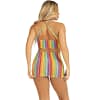 The rainbow stripes that adorn the dress create a vibrant and cheerful visual effect. The combination of bright and bold colors evokes a feeling of positivity and happiness, perfect for summer days or to liven up your look at any time of the year.