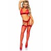 Lace ruffle bra and panty set with adjustable straps, net and bow accents, and matching fishnet stockings designed and manufactured by the prestigious lingerie brand, Leg Avenue. Increase your feminity getting an exclusive piece of seduction sensuality and elegance.