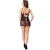 The Cielo model is a set consisting of a T-shirt and thong in a timeless black color. The outfit is based on a sensual combination of elegant lace and mysterious mesh, which at the same time covers the body and draws the eye to it. The thong from the set has a classic cut, which is only a background for a phenomenal nightgown with a sophisticated cut.