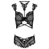 The black Palmenom set consists of two parts: a bra and panties. These two elements combined in one set look amazing and anyone who sees a woman in this set will fall to their knees. The underwear has a lace finish and its additional advantage are the straps around the torso. In areas where there is no black lace, there is a seductive, transparent black material. The Palmenom set will make every woman who wears it feel special. It’s perfect to wear on a romantic evening for two, to celebrate a special occasion when you want to surprise your loved one or just to add a bit of spice.