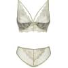 The lingerie set is a lace work of art. The bra is not stiffened and is additionally equipped with two straps on the neckline, so when peeking out from under a shirt or blouse, it will certainly attract great attention. The bra supports the bust well, which means that women with larger breasts will also be able to wear it. Tempting underwear in off-green color also includes comfortable and at the same time sensual lace panties, which, even though they are slightly more built, still create a sexy atmosphere. The design of the panties perfectly highlights women’s buttocks, making every woman feel special. The set is perfect for everyday wear as well as for slightly more special moments.