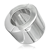 Oval shaped metal testicle cuff designed to fit perfectly around the scrotum between the base of the penis and the testicles. With four screws to apply pressure that can be adjusted with the included allen key and with a ring to attach and complete other fetish games.