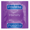 Pasante Ribs Dots Intensity condoms are tapered, textured condoms with pronounced ribs and dots. Natural in color.