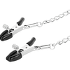 These chain nipple clamps from Darkness! They are unisex and very easy to use. The clamps and chain are made of stainless steel and aluminum. They do not contain nickel. You can use the nipple clamps for your naughty secrets or as a stimulating accessory while penetrating your lover.