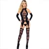 Discover elegance and seduction with our 3-piece set that includes a bodysuit, stockings and matching sleeves. This set is Designed to highlight your femininity and add a touch of glamor to every special moment.