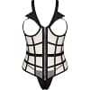 A two-piece set consisting of a sensual, busty corset and a sexy black thong. The corset has a zipper at the front, making it easy to put on. The colors of the set are black and beige, which together create an attractive combination. It is also worth paying attention to tempting details such as a black collar or black belts arranged in such a way as to best highlight the waist. What stands out most about this corset are the cutouts that expose the bust. This makes the whole set very daring and provocative. Not much is left to the imagination. Nipple stickers will be a great addition to the game and add some spice.