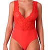 - Style: Bodysuit with a deep V-neckline at the front and an open back with lace details